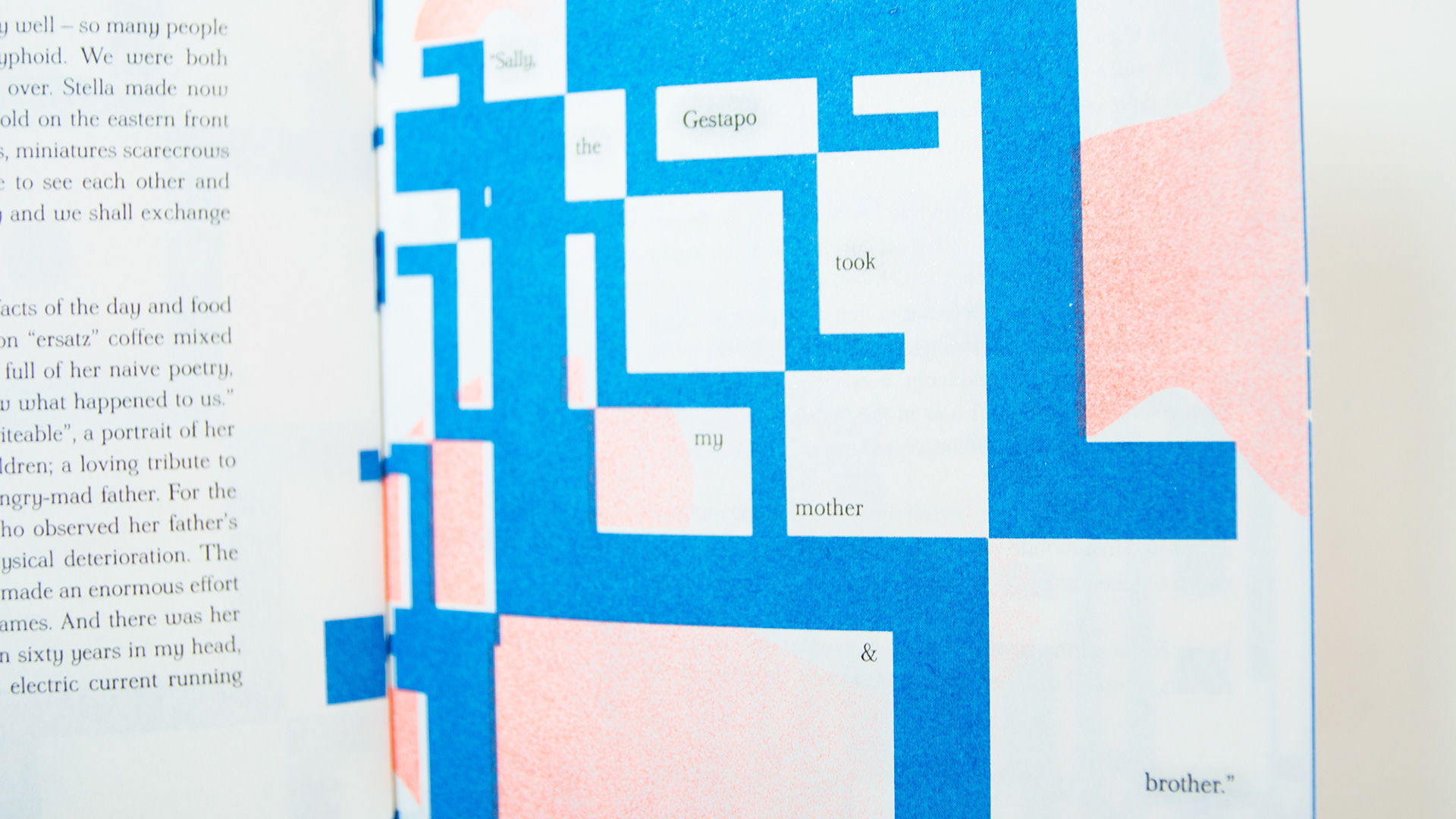 I decided to take inspiration in two different Polish typefaces; the antique typeface Antykwa Półtawskiego, designed by Adam Póltawski and the avant-garde typographical experiment Komunikat by Wladyslaw Strzeminski. The body text is set in the former and the illustrations are formed by the latter. The booklet is printed with a risograph in three different colours – black, blue and fluorescent orange.
